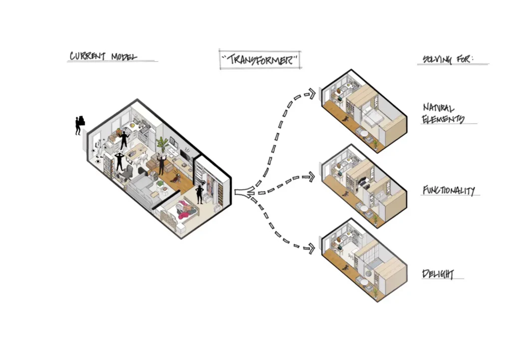 “What if we were to think of housing with a compact footprint as a “transformer,” creating modularity that can be utilized in a variety of ways, combining all the elements that matter.”